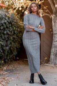 Okay, let’s chat about why every woman needs a midi sweater dress in her closet. First off, it’s super versatile. You can wear it alone or layer it up. In women’s clothing, versatility means saving money and space – who doesn’t love that? Picture this: one dress, endless outfits. That’s the beauty of knit dresses like these.